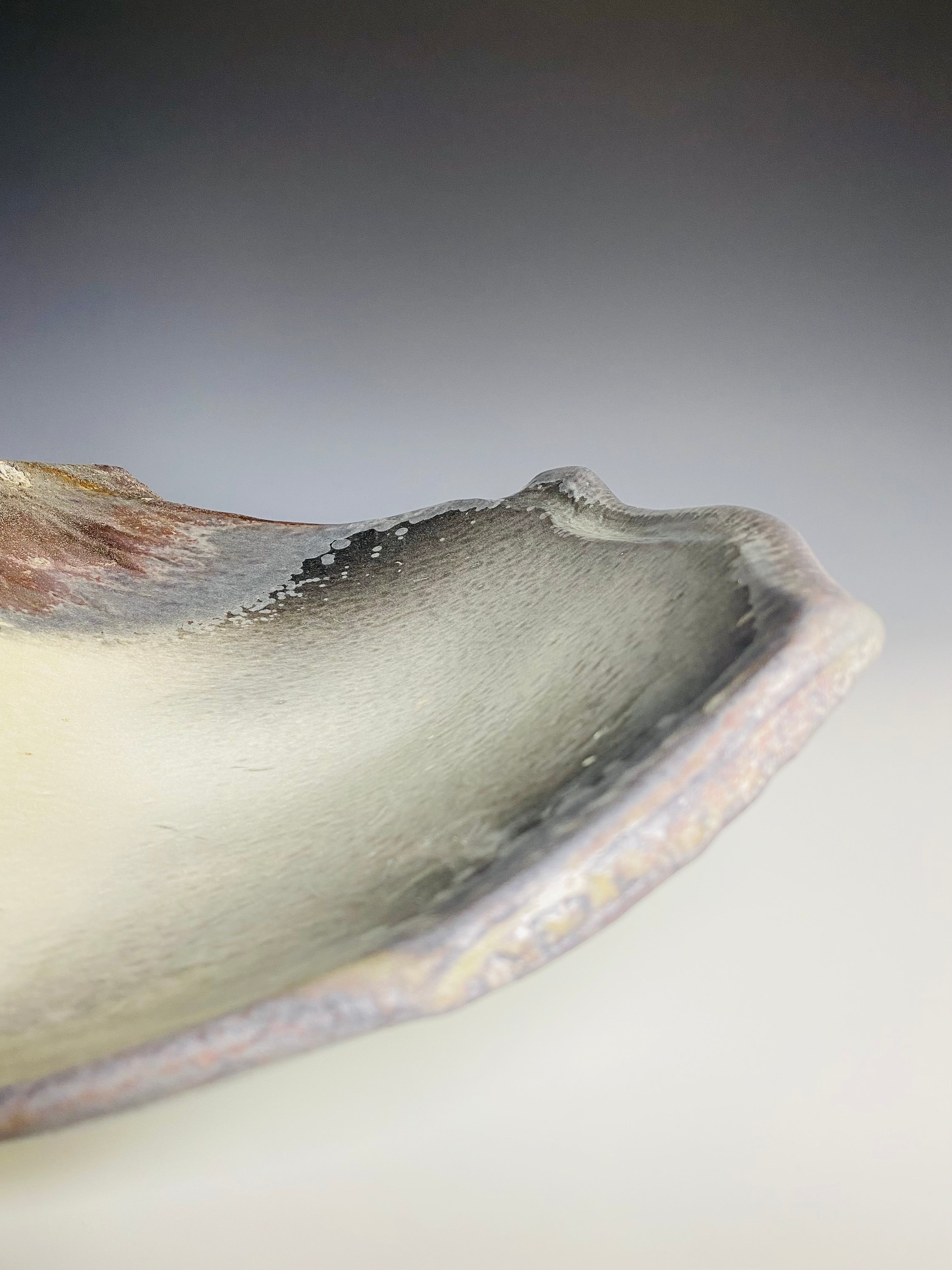 The surfaces of these pieces were created by different types of wood ash which melt in the atmosphere of the kiln during a multi day firing.