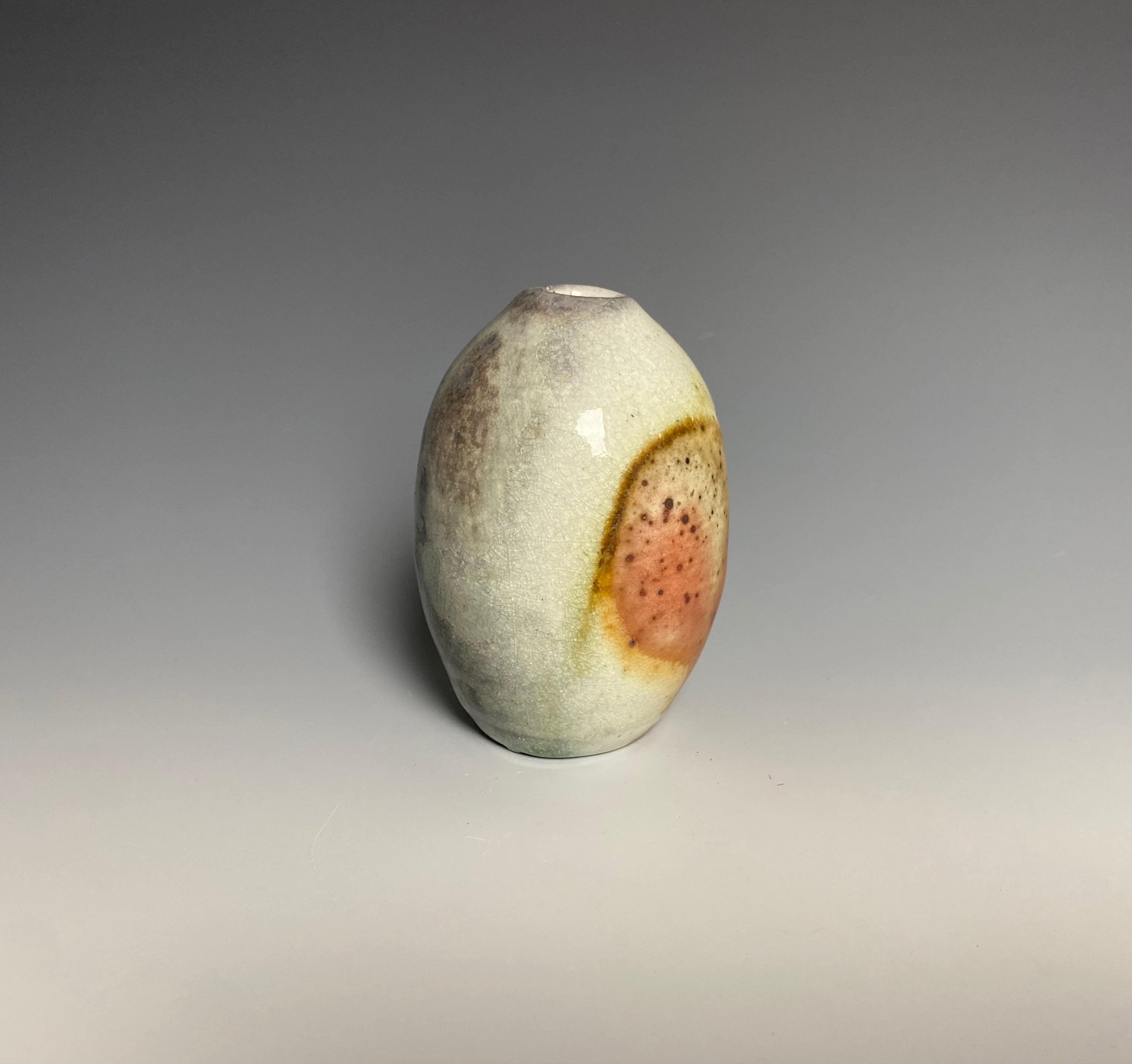 The surfaces of these pieces were created by different types of wood ash which melt in the atmosphere of the kiln during a multi day firing.
