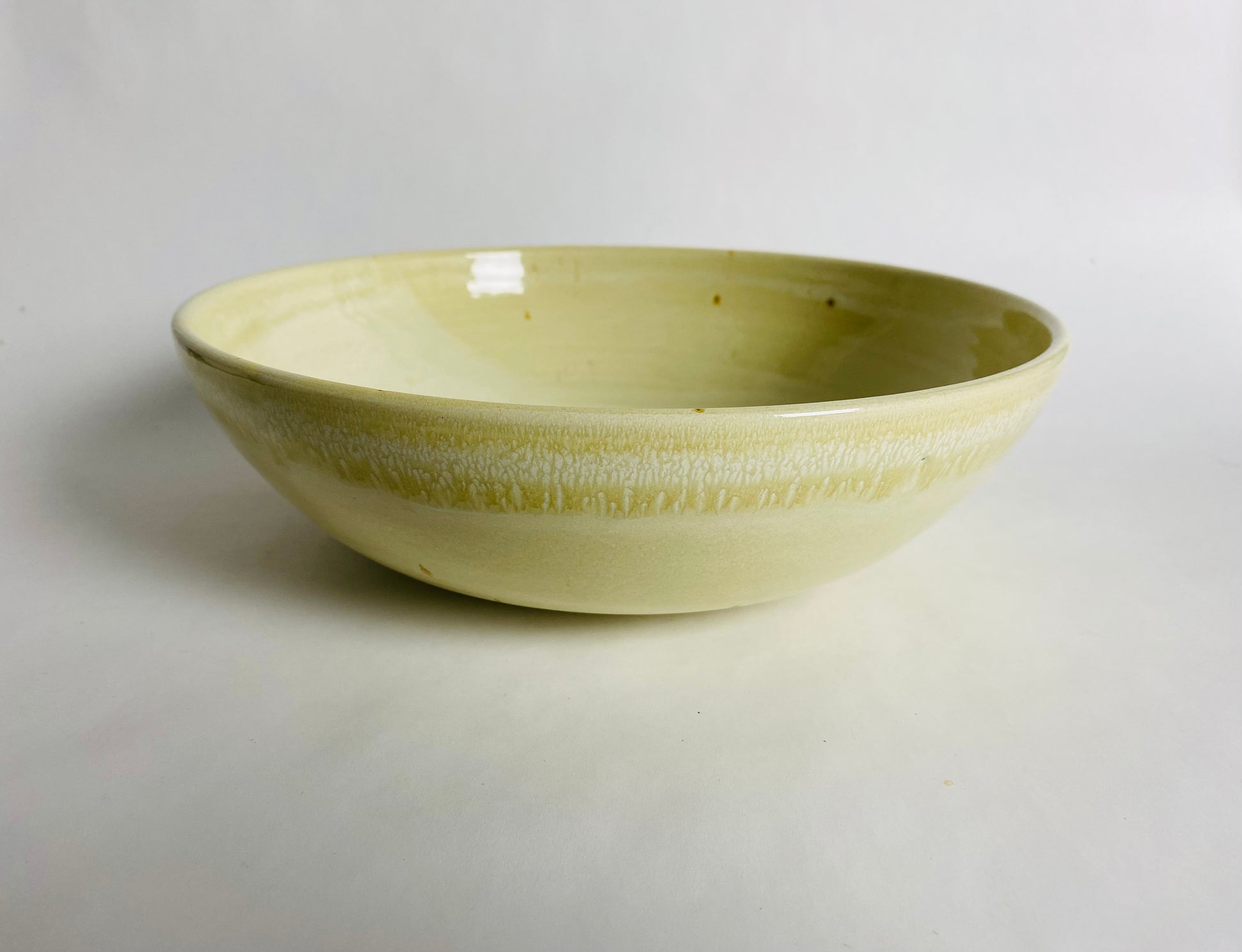 Serving bowl with a yellow glaze. 10" wide x 3" tall