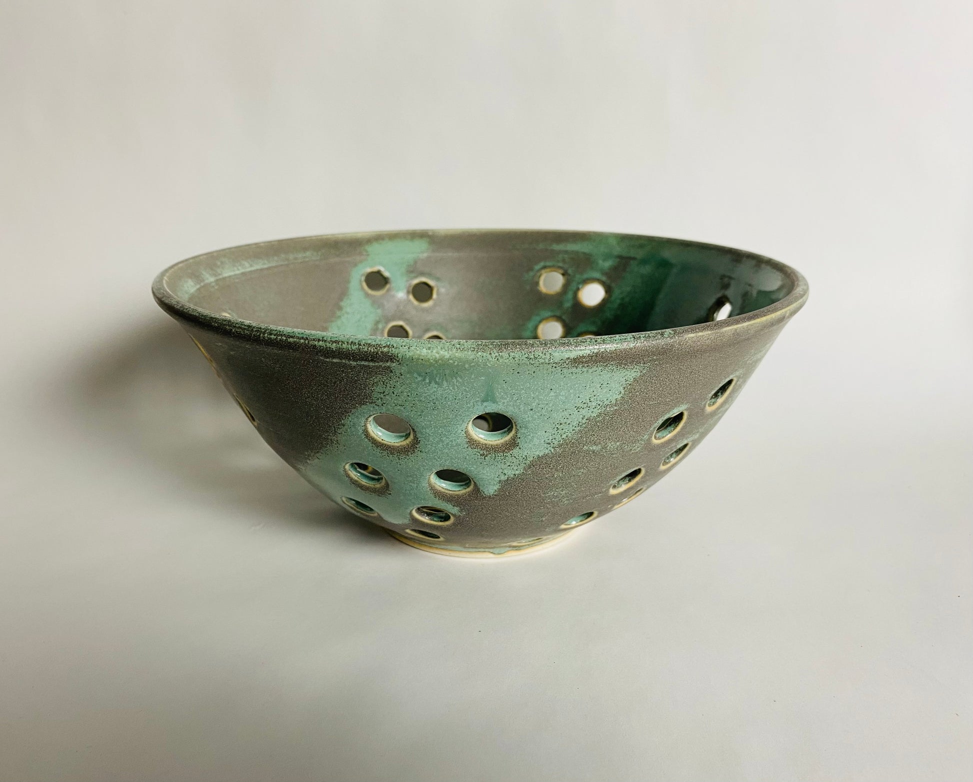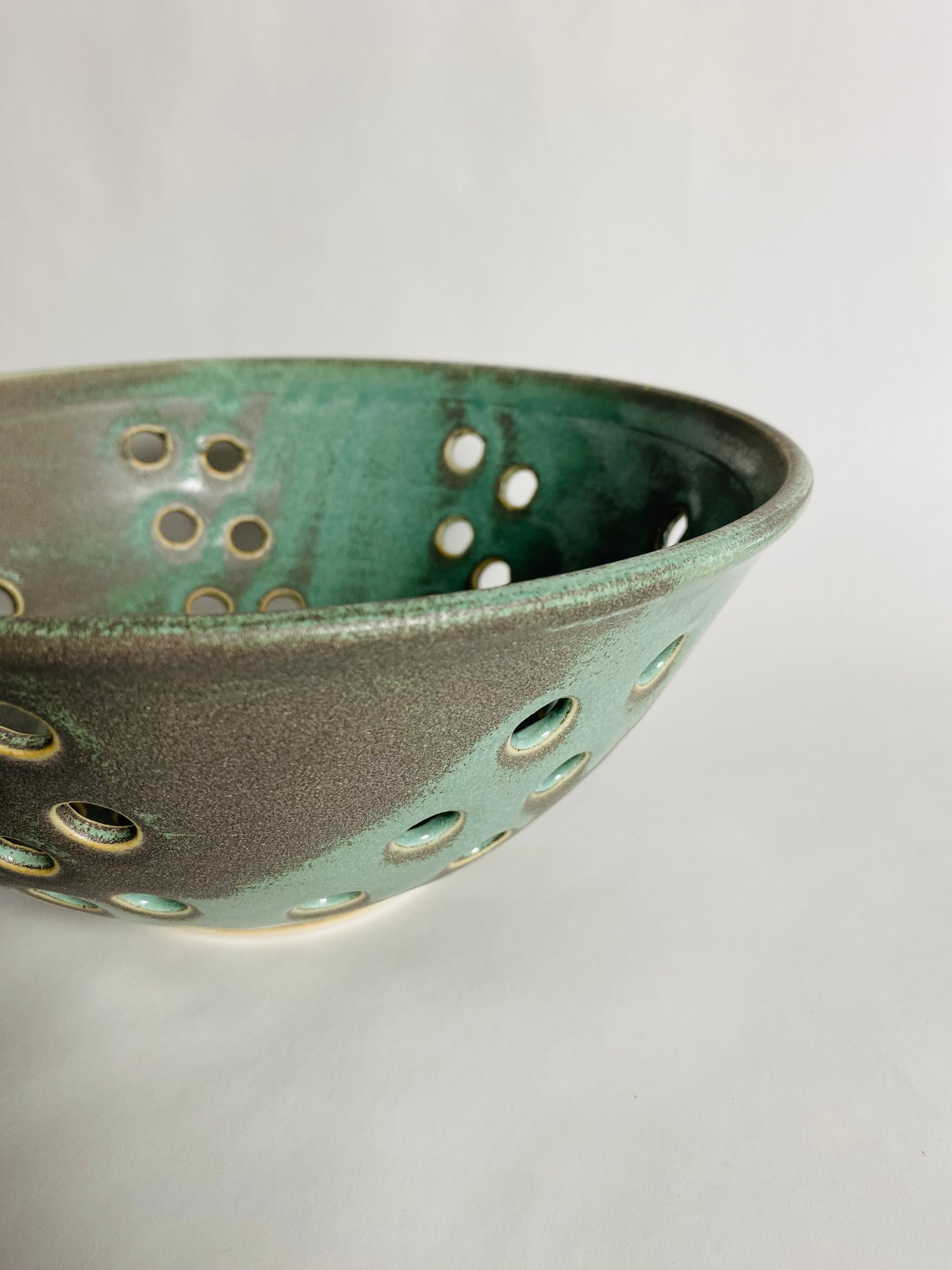 Fruit Bowl with Holes in a Green/Carbon Glaze